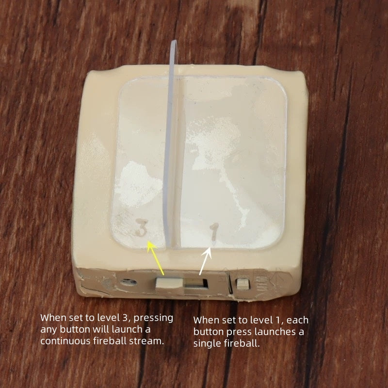 Note: Use the wooden stick to firmly push the material paper into the barrels to ensure proper fireball launching.
